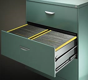 A progressive ball bearing runner system extends smoothly even when fully loaded to allow complete access to each drawer. Buffers in the runners reduce metal to metal contact for quieter operation and longer drawer life. Brownbuilt’s Lateral filing cabinets have been designed for optimal load carrying capability with welded internal cabinet and base frame assemblies. Drawer bodies are rigid two-piece constructions, with full height sides and backs to prevent file loss.