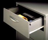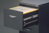 stability. A full height painted drawer body design ensures secure file storage with the option of a drawer file rack divider. Drawers can be completely removed and replaced for relocation using an innovative lever-disconnect mechanism. The contemporary exterior design features a high quality contoured alloy drawer.