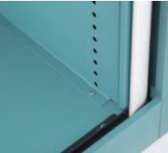 A durable riveted metal construction with welded shelf support channels means that Brownbuilt sliding door cupboards can withstand a lifetime of use. Metal doors slide easily on nylon wheels and guides in metal tracks and can be locked for security.