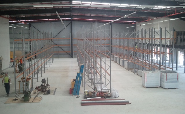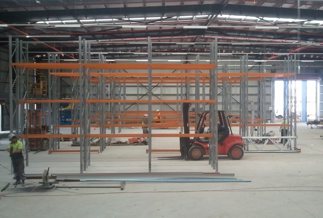 | Before the pallet racking was secured to the ground, a trial run of the forklift was conducted by the client. Of couse the trial was a success. |