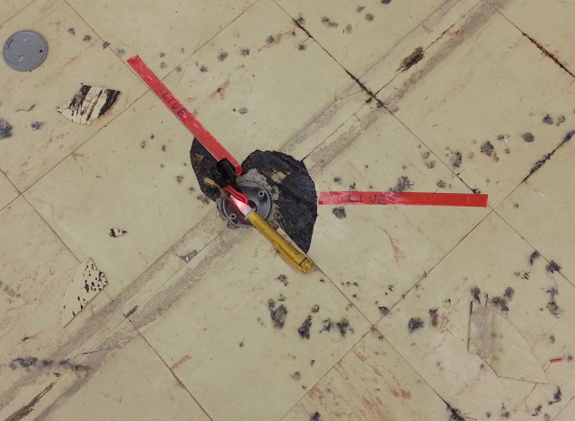 | Nice suprise at the start. Live electrical cables protruding from the floor. Qualified sparkies to the rescue. |