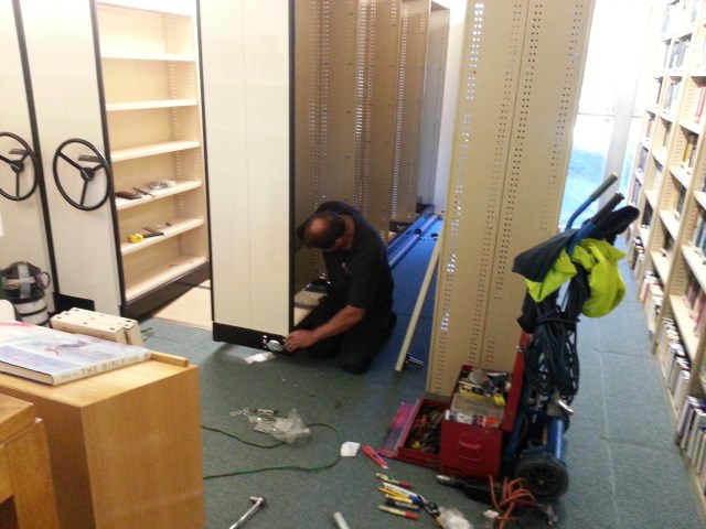 ShelvMaster was contracted to install new tracks for an old rolling filing system that was being installed by in house movers.