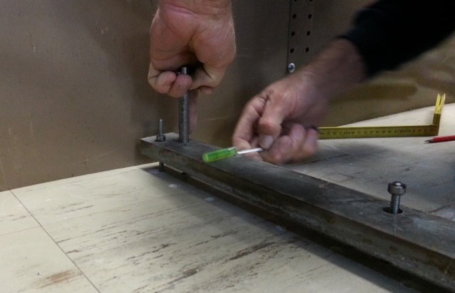 Specialist "Top Nuts", are wound down into the track using a custom tool. Leveling the track sideways is an extremely important part of this process. |